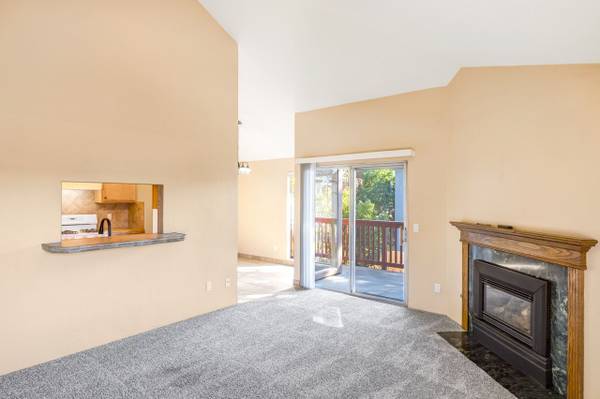 You walk into an opening living area with a fireplace, the kitchen and bathroom have tile, (there is washer and Drayer included) in the unit. The kitchen has plenty of cabinet space also a dishwasher and garbage disposal. In the living room there is lots of natural sun light through the apartment. A sliding glass door that leads to your private patio. There are spacious closets in the bedrooms as well as the entry way.