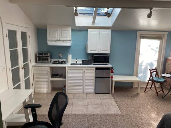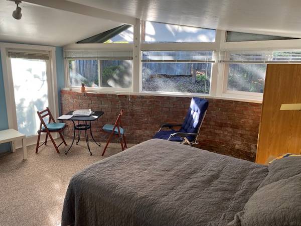 Spacious, bright studio apartment on quiet residential street, above Monterey High School. Off-street parking, UTILITIES INCLUDED, bathroom totally remodeled, extra large closet, kitchen for minimal cooking, (microwave, double hot plate, counter-top oven) no laundry facilities.
