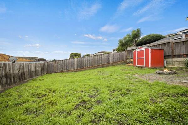 When you first go up the 8 stairs to the porch, you are greeted with your own porch area. Going in immediately to the left is a three panel front facing window. Going though the living room you get to the kitchen which leads to the laundry room. From the living room and take a left, you are met with the bathroom and granite shower. To the left and right of the bathrooms are each bedroom. Taking you back through the laundry room is the back storage area which leads outside. The backyard is quite generous and offers ocean views. Additional storage and garden equipment can be kept in the shed.