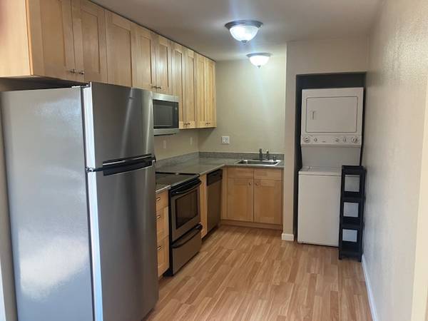 This is a great One bedroom, ground level condo, with storage in gated community. Unit has an updated kitchen with electric stove, dish washer, microwave and washer and dryer, laminate floor in kitchen, carpet in living room and bedroom. Tenant pays water & PG&E and owner pays garbage & sewer. Small dog is negotiable. The complex has a pool and club house. Available now
