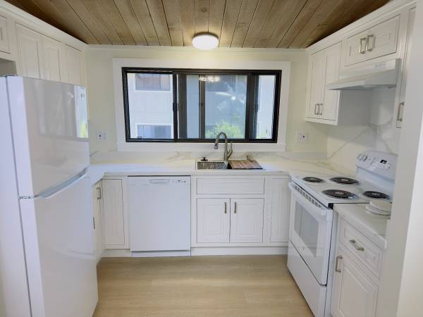 Fully renovated spacious 1100 sq. ft. two bedroom/one bathroom apartment! It features all new appliances, quartz composite countertops, luxury vinyl plank flooring in the kitchen and bathroom, all new cabinets, new carpeting, and new light fixtures! There are open beam ceilings, walk-in closets in both bedrooms, and a linen closet in the bathroom.