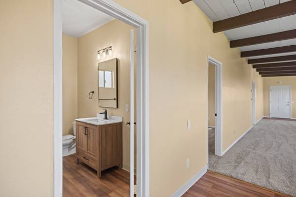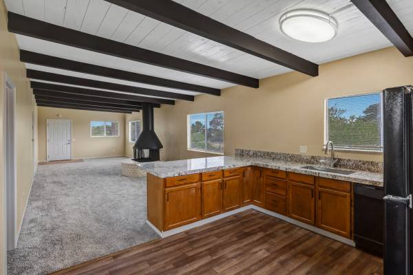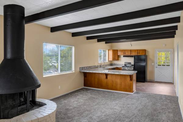 When you walk in you walk into a large open living room that opens into the dining room and then the kitchen. The whole place is full of natural sunlight through the many large windows. The bedrooms and bathrooms are down and on the right.