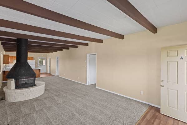 This is a very large two bedroom, one bathroom in the large open living room with open floor plan.