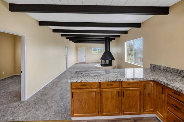 When you walk in you walk into a large open living room that opens into the dining room and then the kitchen. The whole place is full of natural sunlight through the many large windows. The bedrooms and bathrooms are down and on the right.