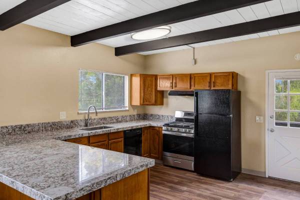 It is the full upstairs of the building and has full sized appliances including dishwasher. Laundry On-site (shared)