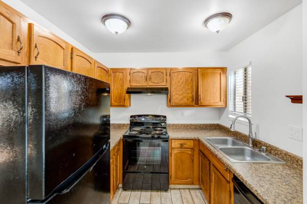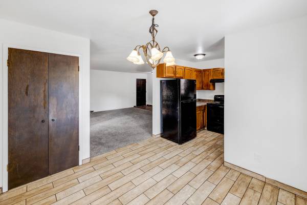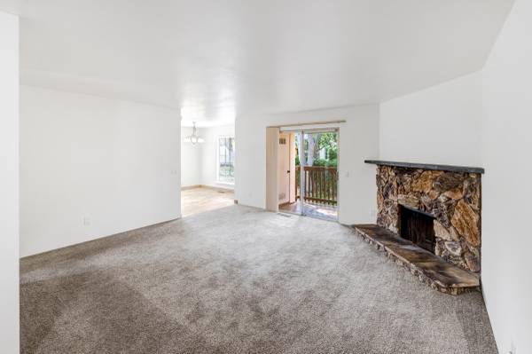 When you walk in you walk into a large open living room with less than 1 year old carpet and a beautiful wood burning Carmel stone fireplace and access to the first deck. through the large open living room is the stone tiled dining room the opens to the kitchen on the left. The dining room has lots of great natural sunlight and new fixtures. The kitchen has dishwasher, full sized refrigerator, and full-sized electric stove.