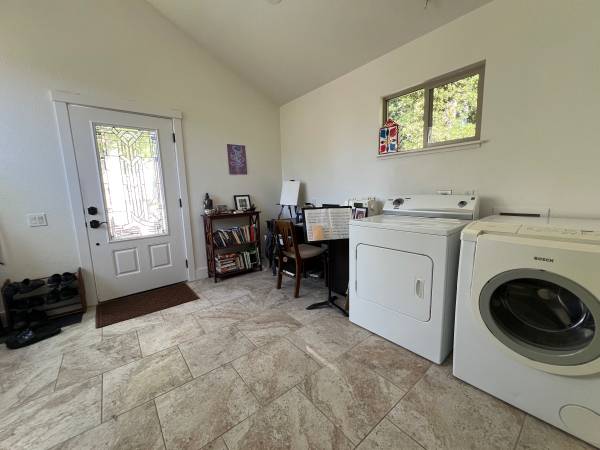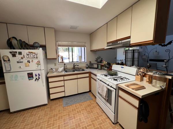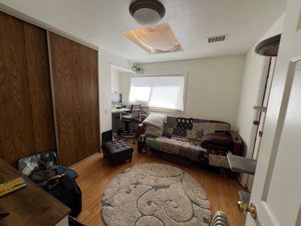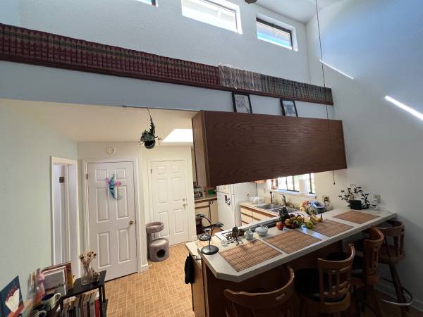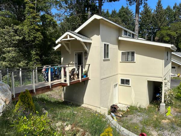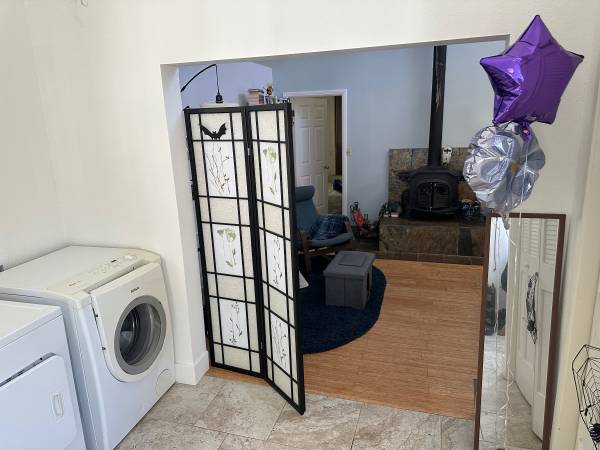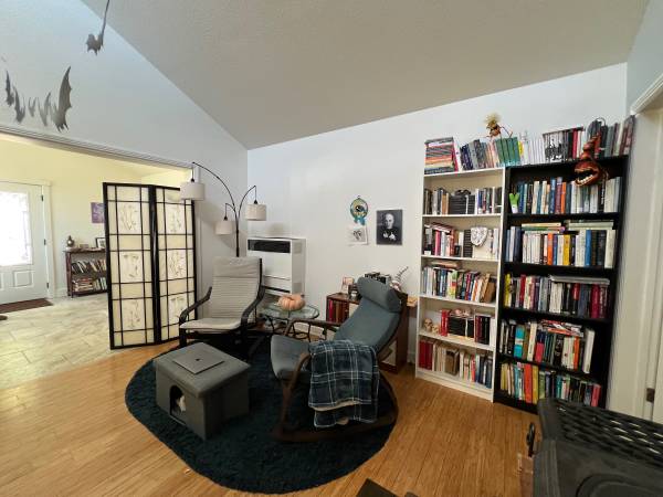 Located in quiet area. One bedroom with additional office. Bamboo and tile floors, skylights, complete kitchen with breakfast bar. Living room with wood and propane stoves, bathroom with soaking tub off bedroom. Second room has been used as office space. Wifi available. Apartment is unfurnished.