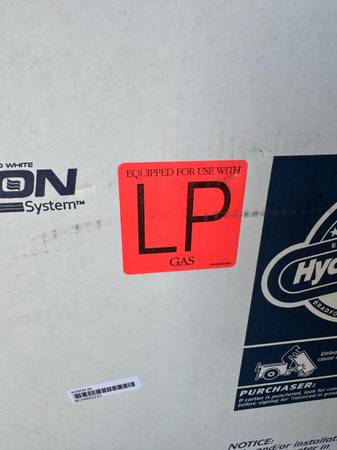 New in the box 50 gallon propane water heater.