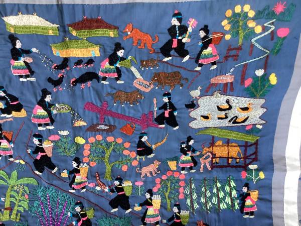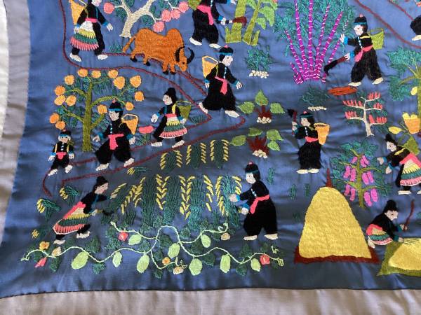 Hmong village folk tapestry - hand embroidered textile art - Thailand - $60 (Carmel)