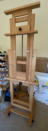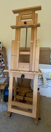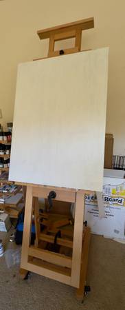 https://meedenart.com/collections/floor-easel-1/products/deluxe-large-rocker-crank-studio-easel One of the best easel options available to a painter. Lightly used. $300 (initially purchased for $450)