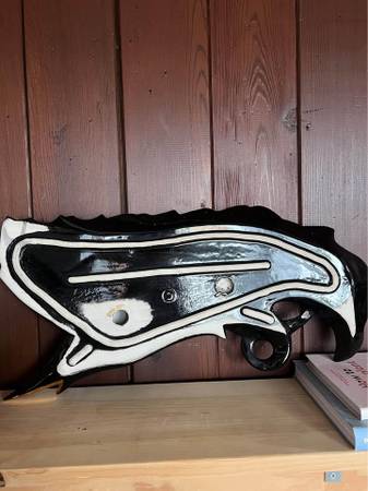 Striking black and gold ceramic marlins, perfect for adding a bold, nautical touch to your space. These pieces have traveled and aged gracefully, showing light wear consistent with their age and use – adding to their vintage charm.