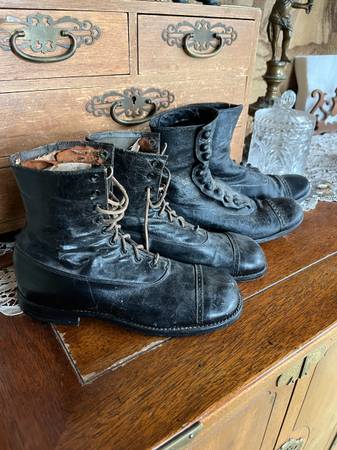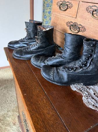 Two Pair of Antique Leather Childrens boots one laced one buttons - $45 (Carmel Highlands)