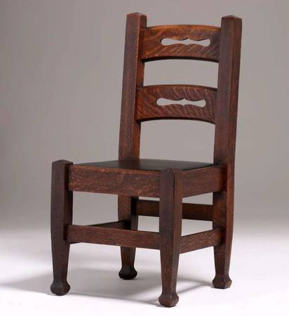 Early Michigan Chair Company Cutout Side Chair c1900. Unsigned. Excellent original finish. Very Sturdy. 37.75"H x 19.5"W x 21.5"D.