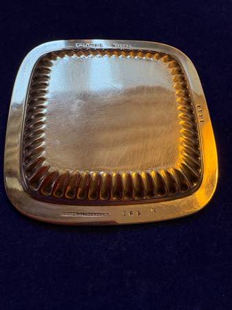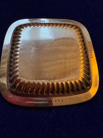 Very rate, circa 1940's sterling silver trinket tray with monogram by Tiffany & Co. Measure 3 inches by 3 inches, delicate rope detail on sides with engraving in center.