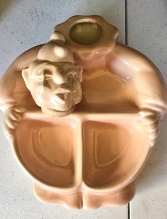 VTG Hankscraft Pink Baby Food Warming Divided Dish Clown Design with matching pink mug / cup and matching blue mug / cup 1940's-1950's VTG Never used for feeding was a display piece only