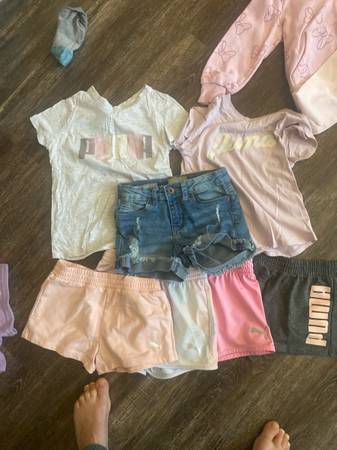 Kids clothing -juicy, Levi’s, puma, art class, cat and Jack, sleeping on it. - 21 shirts, 4 pants, 9 shorts, 1 dress, 3 sweatshirts, 3 juicy track suits, 2 organic cotton PJs.
