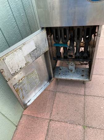Commercial deep fryer, it’s a 50 lb. fryer, natural gas cleaned thoroughly in and out, Missing basket mesh.