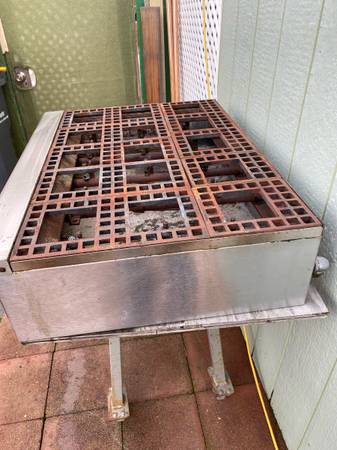 Works great, natural gas, 10 burners. Very clean, missing one knob