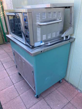 Mortar turbofan 25. 1/2 sheet pan size, with a portable cart on wheels, it works on 115 volts. Works great. Cart measures 36”w, 30”d, 54”h, including wheels. Cash only No scammers No low ballers.