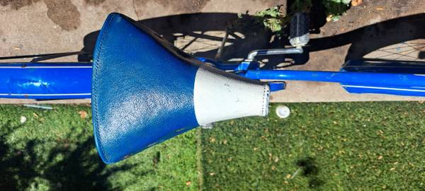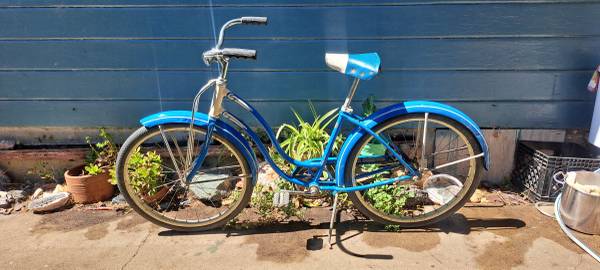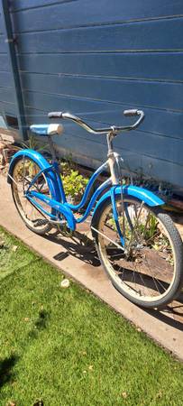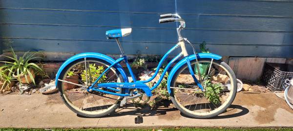 Vintage Schwinn bike, cute and stylish, blue, good working condition. Smaller frame. Some dings and scratches, but not bad (see photos). Good tires. Serial number indicates it was manufactured in...