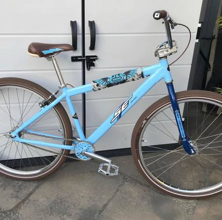 Like new 2020 SE BMX Big Flyer 29er. Custom built for a Santa Cruz rideout, but covid hit and I ended up not going. The bike has been garaged since being built in 2020, unridden. Built with a new frame and all brand new parts and components. Pre-2021 frame with the good head tubes (not the cheaper integrated head tubes and headsets) super-rare SE invisibolt cranks, custom built SE wheels laced to Mohawk hubs, Hornet performance freewheel, anniversary Flyer seat, discontinued brown Vee Speedster tires, Shimano XT brakes, SE Super Big Honkin’ bars, vintage SE pads and decals, etc, etc… will come with new SE Bear Trap pedals. I’ve had offers on Instagram to buy this bike, and always politely declined, but it shouldn’t just be locked up in a garage; needs to be ridden. Here’s a chance at a one of a kind, adult owned, custom SE big BMX that you will NOT see anyone else on at the rideouts. I don’t really need to sell it, so I won’t be responding to low-ballers, thanks. If the ad is up, the bike’s available. Call or text if interested, as I check email infrequently. Eight three one five two one four nine zero four. Thanks for looking at the ad!