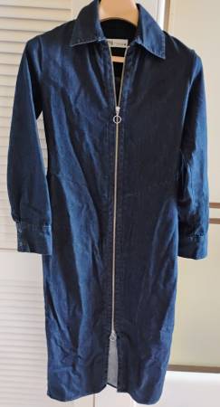 Long, stylish dark denim dress by Zara. Never worn. Zips down from top or up from bottom. Fitted. Button cuffs. Loved it but too small for me ☹️ Pickup in Carmel.
