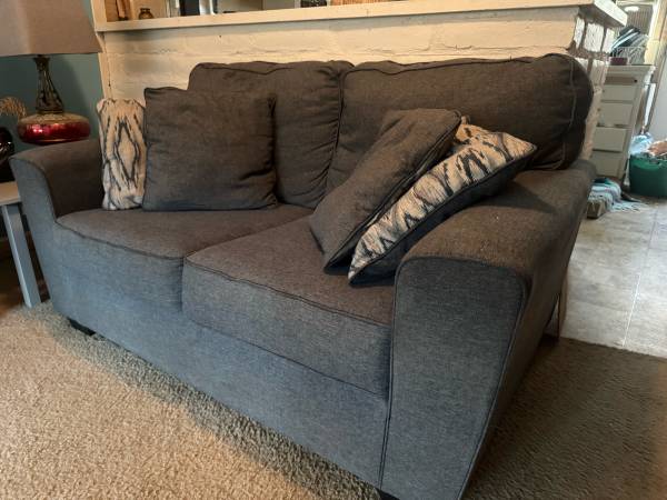 Comfy grey couche! Just moved and this set (purchased 4 years ago) doesn’t fit in my living room! Will help load up/unload if needed.