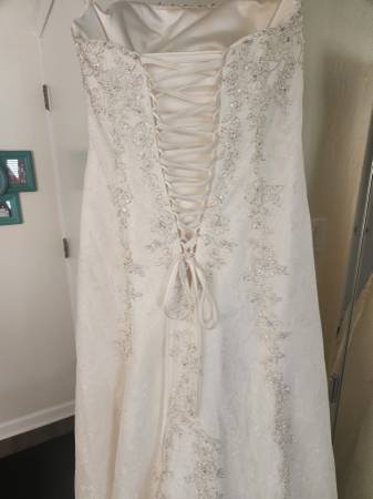 Beautiful Maggie Sottero A3021 ivory wedding gown, originally purchased in 2010. Worn once, still in great condition. Stored in original garment bag. Label size 14, fits more like 10–14 (corset back...