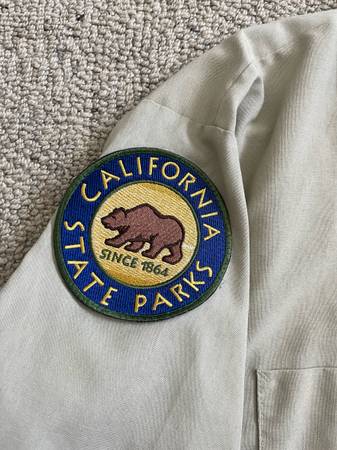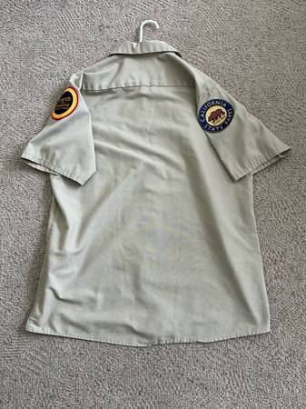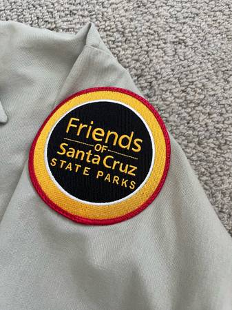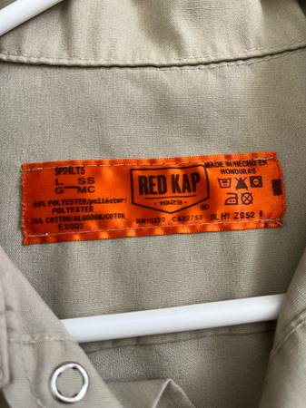 Men’s large. Comes with patches on both sleeves. 65% polyester, 35% cotton.