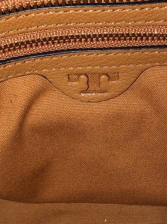 Authentic Tory Burch designer bag. All gold hardware is in perfect working order. No scratches. Clean interior and exterior. One minor flaw , you will see in second to last photo.
