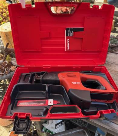 Up for sale is this Hilti WSR 36-A reciprocating saw plus a case, blade and owner's manual. This saw looks nearly brand new and was used by a rock hound. Part of a group of Hilti tools this saw has no battery or charger.