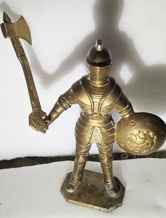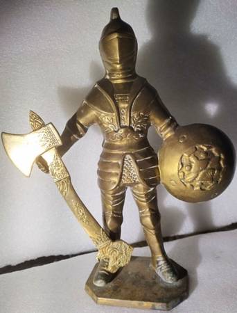 antique heavy 12 " brass warrior/ knight n axe combo great art deco