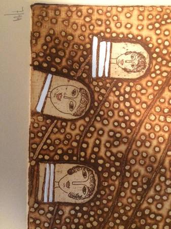 Signed and numbered. 17"x 14". Check other prints : Rain Storm, Two Doves, Cancer, and Aquatint Etching to compare signatures. Price reduced to $75. Valued at $750 to $850. Call Joe at show contact info