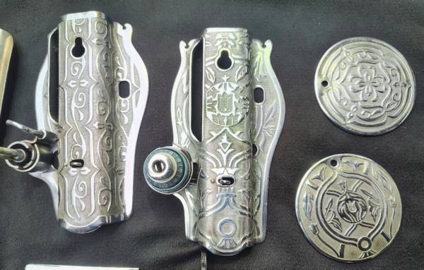 Antique sewing machine parts chrome plated etched cool rare working motor and light combo collection