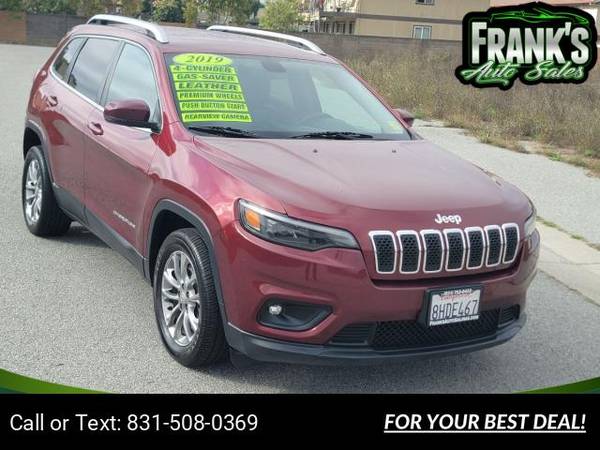 2019 *Jeep*Cherokee*Latitude Plus -Stock 12265 Frank's Auto Sales 831-508-0369 - Call now for your best deal! ๐ ๐ Why Shop With Us? Located in Salinas, California, Frank's Auto Sales, INC. is a pre-owned, late model dealer that provides customers with a complete automotive experience at competitive prices. Frank's Auto Sales, INC. is dedicated to customer satisfaction and we have provided you with a map, as well as our address and phone number to help you find us easily. We are passionate about luxury cars and we intent on sharing that passion with you when you purchase your new car from us. Come by today and test drive the car of your choice. Year: 2019 Make: Jeep Model: Cherokee Trim: Latitude Plus Mileage: 86k miles Exterior Color: Velvet Red Pearlcoat Interior Color: Black Engine: 2.4L 4 Cylinders Drive: fwd Transmission: Automatic VIN: 1C4PJLLB3KD313047 Enjoy our amazing 2019 Jeep Cherokee Latitude Plus that's dynamite in Velvet Red Pearlcoat! Powered by a 2.4 Liter Tigershark 4 Cylinder that generates 180hp tethered to a 9 Speed Automatic transmission for rewarding road manners.This Front Wheel Drive SUV is supremely capable on the trail, impressively confident on the pavement, and sees nearly 29mpg on the highway while showing off LED lighting, fog lamps, bright roof rails, and bold alloy wheels. Inside our Latitude Plus, notice the comfortable layout with cloth/premium vinyl seats, eight-way power for the driver, and a leather-wrapped steering wheel.Enjoy high-tech convenience with a 7-inch touchscreen, Android Autoยฎ, Apple CarPlayยฎ, Bluetoothยฎ, and a six-speaker audio system for the creature comforts you'll need to keep a smile on your face. You'll also be confident knowing that Jeep safety features such as a rearview camera, ABS, stability/traction control, and multiple airbags are in place to keep you safe and secure.This Cherokee Latitude Plus's winning combination of capability, comfort, and style will surely please you! Save this Page and Call for Availability.We Know You Will Enjoy Your Test Drive Towards Ownership!