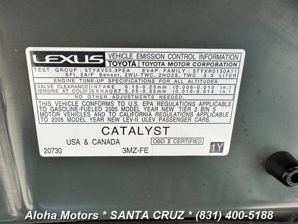 This 2005 Lexus ES 330, finished in Oasis Green Pearl with an Ash interior, is equipped with a reliable 3.3-liter engine. With its low mileage of below 121,000 miles, averaging less than 6,000 miles per year, this sedan is a testament to its well-maintained condition. The factory default features of this vehicle include a smooth automatic transmission, comfortable leather seats, a sunroof for added luxury, and a premium sound system for an enhanced driving experience. With fuel efficiency ratings of 18 MPG in the city and 27 MPG on the highway, this Lexus ES 330 offers both performance and economy. Rest assured, this vehicle comes with a clean CARFAX report, providing you with peace of mind as you make your next automotive investment.