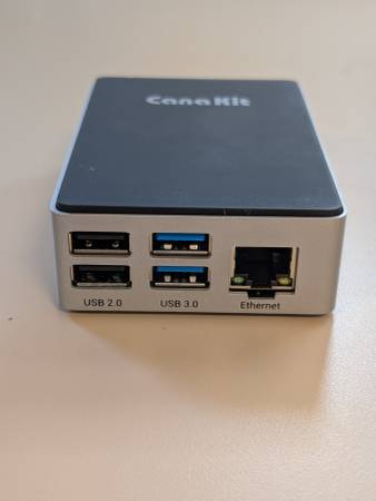 Raspberry pi 4 with 8gb ram. 128gb Samsung micro sd and canakit adapter and case