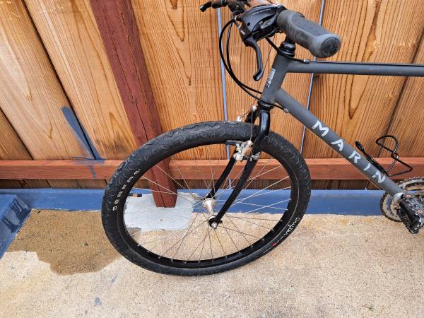 "Marin" brand, 'Lite' model, 21 speed, mountain bicycle. Used condition, Gray in color, 26" frame, "Serfas" hybrid tires, Shimano gear system. Fully functional, dependable bike. This bicycle has always been stored in a garage or shed and just recently covered with an outdoor bicycle cover. Local pick-up only, no delivery available. Cash, please email to arrange a time to see the bike, thank you.