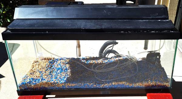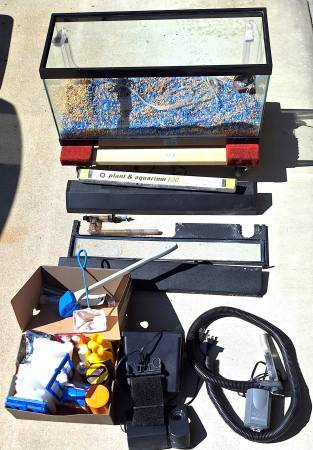 REDUCED The 20-Gallon Aquarium is approximately 30” x 11” x 11”. It has rocks, two under-gravel filters, a Whisper filter system with several refills, Top Fin heater, light (new bulb in package),...