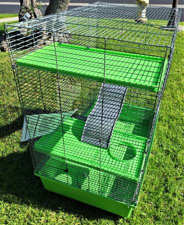 This is basically everything you’d need but the critters. There are 3 tiers with “ladders'' for exercise and animals' natural climbing instincts. We attached hardware cloth around the bottom because our rats kept trying to chew the plastic base, which we replaced and is new. It is still perfectly intact.