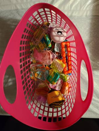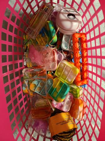 Plastic tote basket with a variety of fidget toys Selling for: $8
