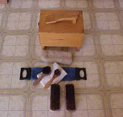 This is for a Vintage Wooden Esquire Shoe Valet De Luxe Shoe Shine Box Kit -Brushes and Buffers. Good Condition, does have a front stain. $40.00...Cash Only...Must Pick Up...