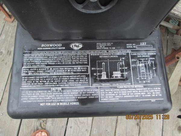 TWO NEW WOOD STOVES NEVER USED WITH ALL ACCESSORIES ( LEGS, HEARTH, ETC. ) #1. U.S. STOVE CO. LOG WOOD MODEL 1261 = $175 #2. BOXWOOD MODEL MODEL 127 = $125. CALL LV. MESSAGE OR EMAIL, NO TEXTS.