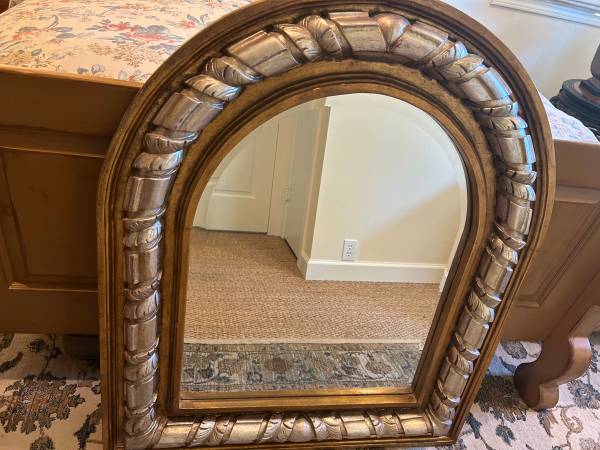 This mirror is a real show stopper. The glass is beveled. The frame is wood that is uniquely twisted in a beautiful design. Perfect for many rooms in a house. The measurements are: 36” wide at base, by 42” tall and about 3.5-4” deep. Very elegant but can be used with casual furnishings or designer home. Imported from Mexico Design shop 34 years ago. Beautiful condition! Cash Only.