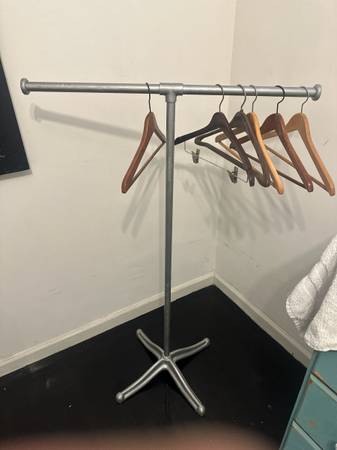 commercial grade clothing rack . Very sturdy. 34 inches long. 51 inches tall.