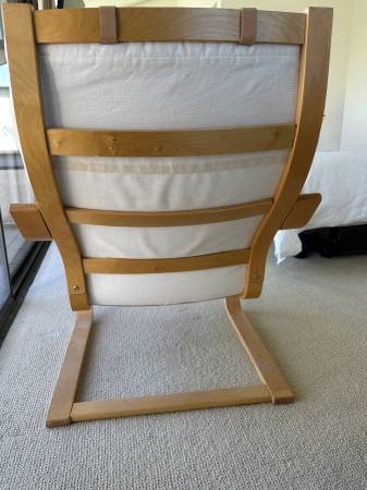 On sale on the famous IKEA website for the chair and ottoman for $269 (before taxes!), so this is priced at $75 to move very quickly. Very good condition. White fabric for a clean and modern look.