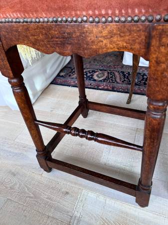 3 Walnut bar stools with suede seats and backs. Very good condition 225 for all 3 OBO