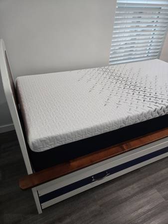 Frame has normal wear , Mattress is in great condition-minimal use. Pickup in North Salinas or I can deliver for a fee. Bed has a trundle for an extra mattress or storage. Se habla espanol.