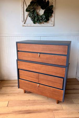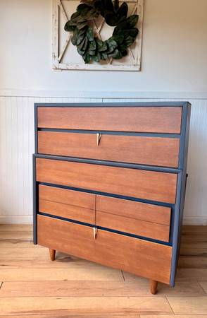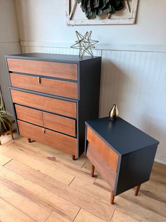 Mid-Century Modern Tallboy Dresser & Nightstand Set