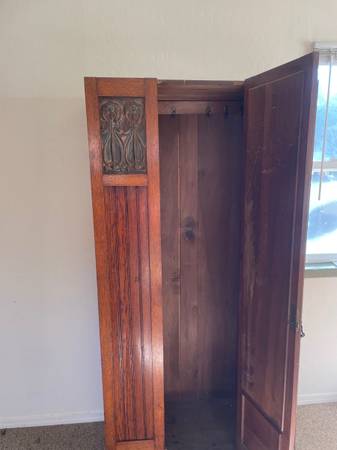 Two antique armoires. $175 for larger glass piece and $300 for wooden piece (circa 1910).